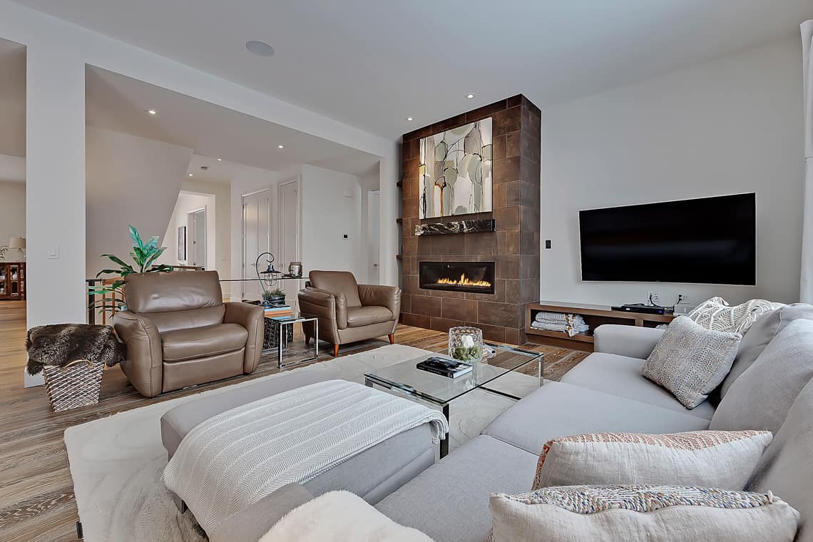Master suite offers massive walk-in closet & a spa inspired ensuite with large soaker tub, dual vanities, steam shower & heated floors. Large laundry room conveniently located on top floor with sink & folding areas.